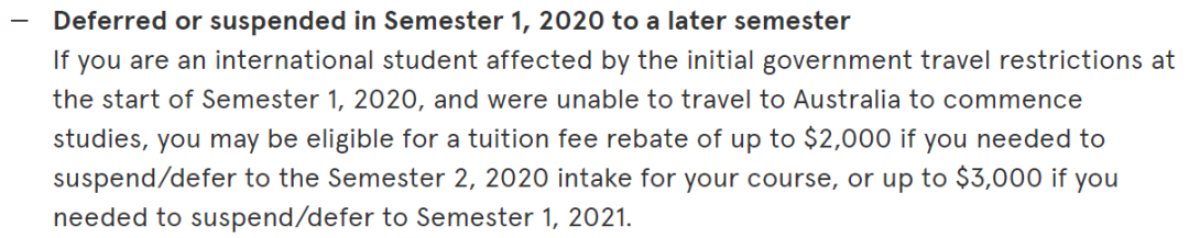 对于受疫情影响而被迫延迟到2021年入学的在校生,可以获得最高$3,000的学费返还。