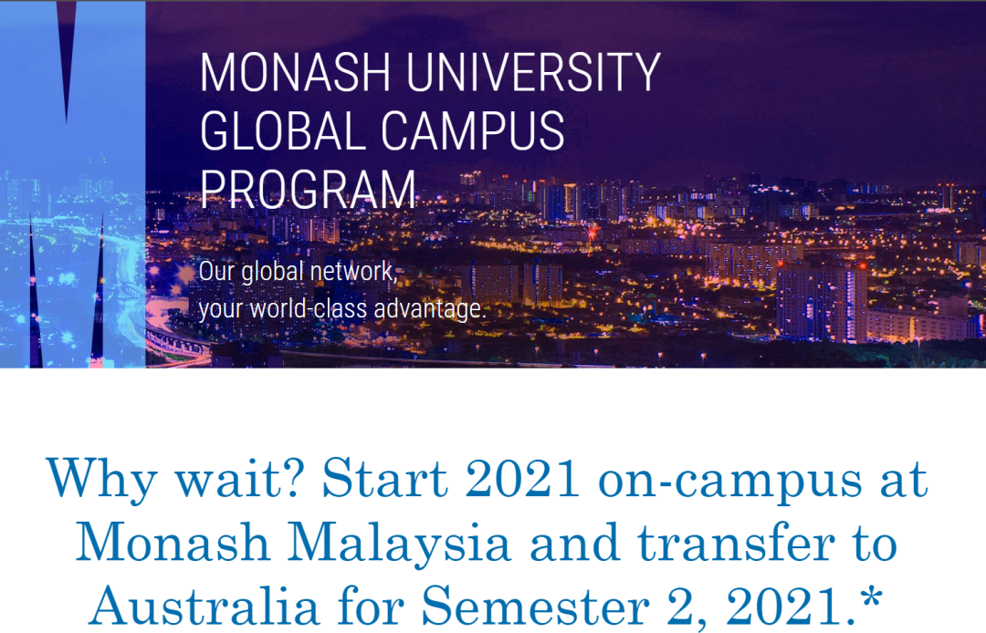 鉴于国际学生入境问题,2021年入学新生可以2月先在马来西亚校区入学,7月再返回澳洲校区上课。