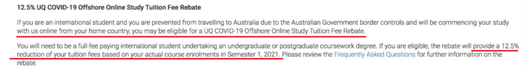 UQ表明对于无法前往澳洲,在自己国家上网课的同学,可以享受“UQ境外授课的12.5%学费减免”。