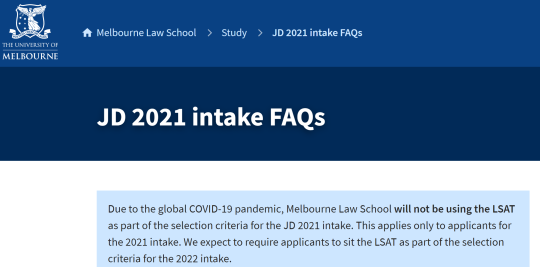 并且根据墨大上半年公告,申请2021年申请Juris Doctor硕士学历法律课程的学生将豁免100澳币申请费,也无需提供LSAT成绩,仅限2021年入读学生。