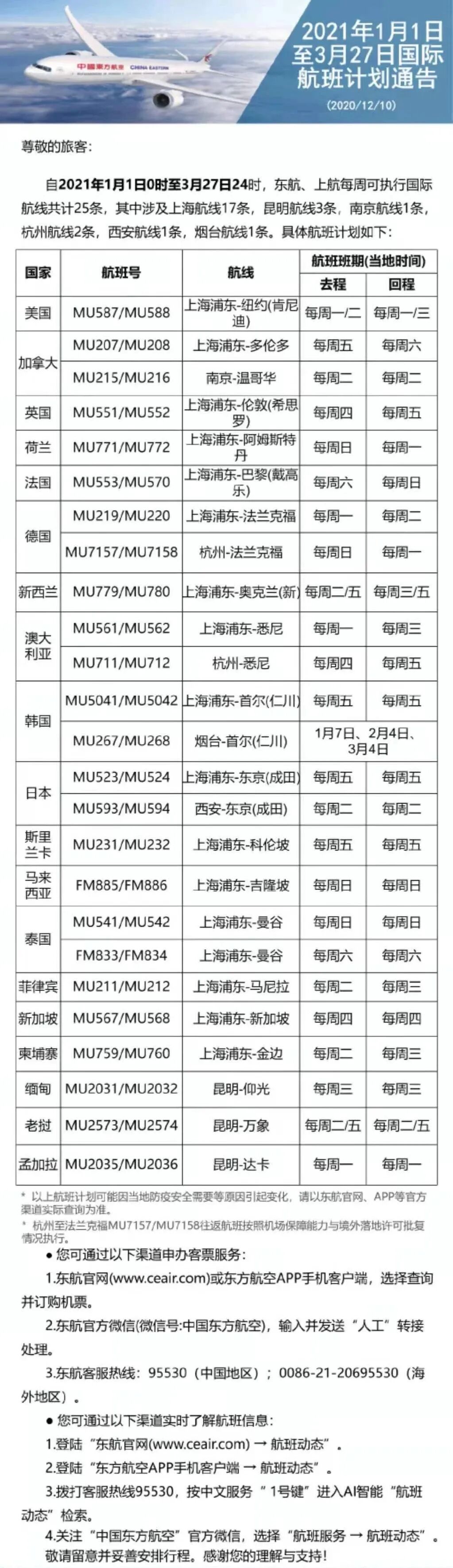 春季学期来临,一部分留学生被要求到校面授,国际航班要注意了!1月航班安排,你记得收藏起来哟(^U^)ノ~YO
