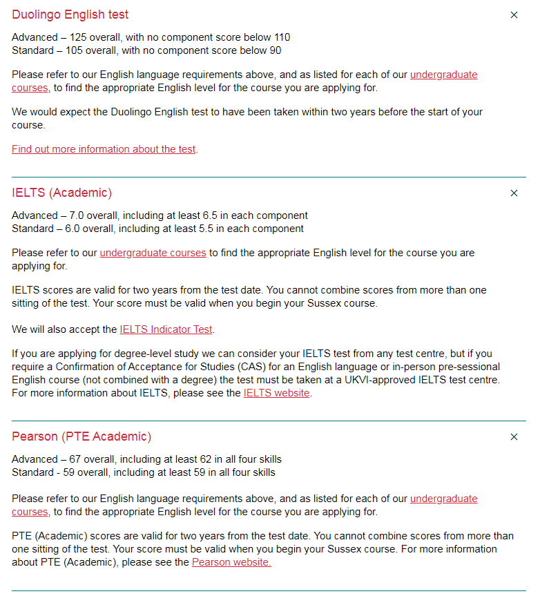 萨塞克斯大学2021年入学正课接受DET多邻国英语测试成绩,同样有小分要求。