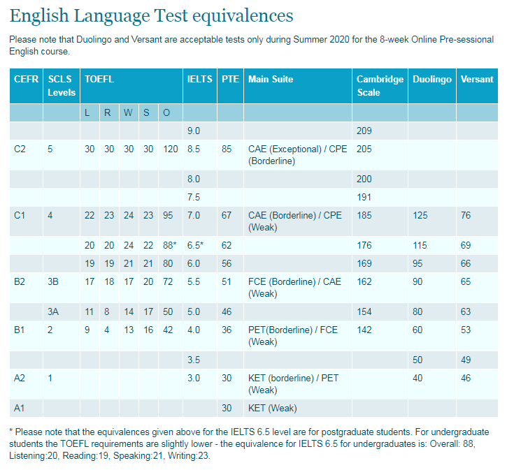 华威大学正课的多邻国语言要求是分梯队的,具体要求如下: