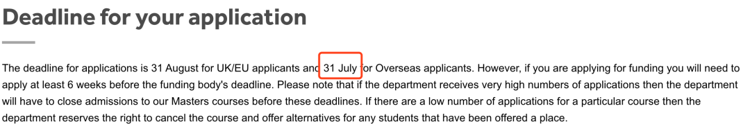 伦敦大学学院大部分研究生专业依然开放申请,但申请截止日期有所不同,大家注意时间安排: