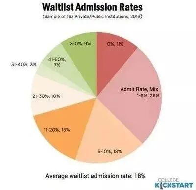 统计163所美国高校的Waitlist转正数据,整体来说,18%的候补学生可以获得录取。