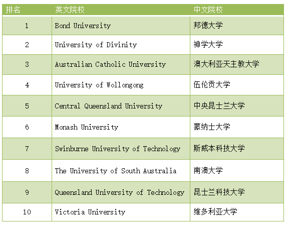 ESS报告中,排名前10的院校竟然只有一所澳洲八大院校上榜——蒙纳士大学位居第6,而其他七所大学则位于——