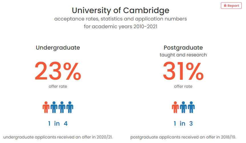 也就是说,几乎平均4个申请者中,就有1个申请者获得剑桥大学offer,什么亲妈大学啊!