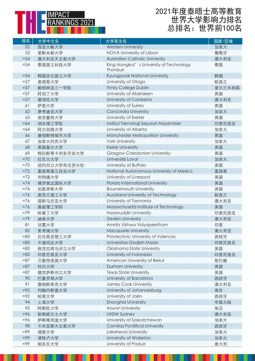 4月21日,泰晤士高等教育正式发布2021年度世界大学影响力排名!
