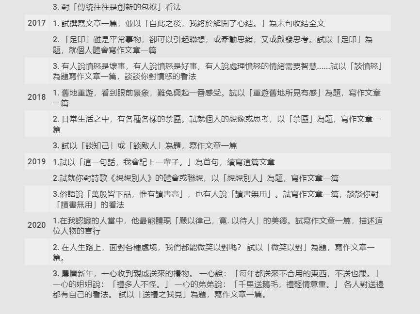再来看看往年香港高考的作文题——