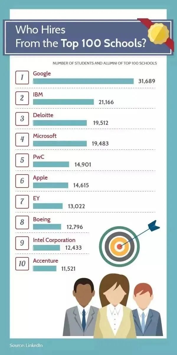 近期,LinkedIn调查各大名企的员工学校背景,发现他们都更偏爱名校生!