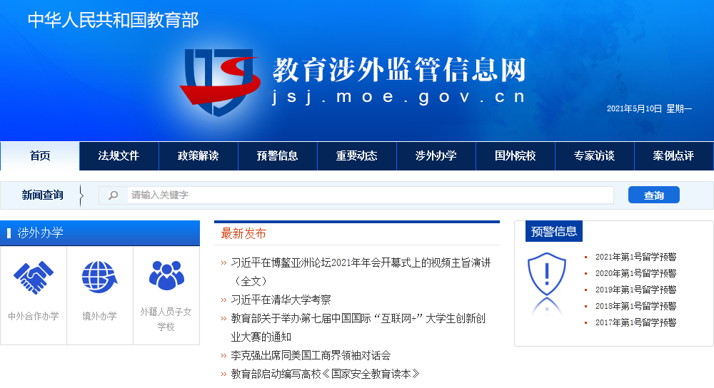 第一步:搜索 教育涉外监管信息网 ,点开网站
