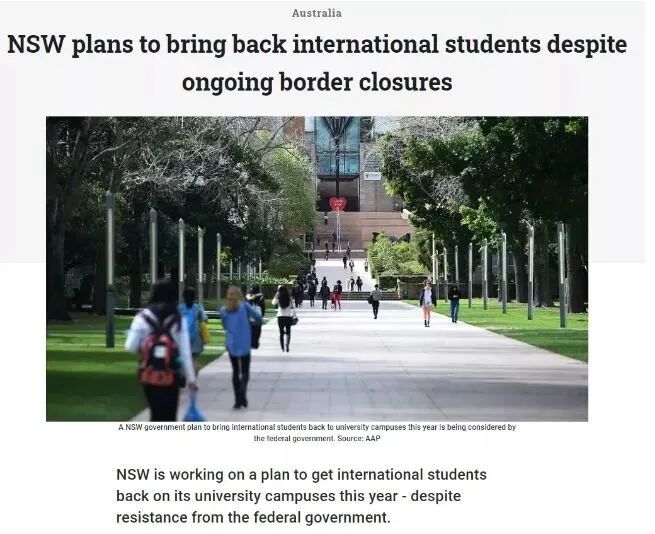 “我们希望国际学生能在第二学期或是八月份回到新州校园并参与课堂,并且寻找最合适的让学生返澳的方法”