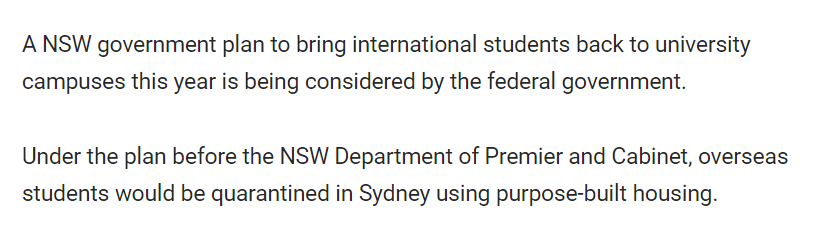 最近各州政府会陆续向联邦政府提交返澳试点计划,其他州的国际学生也不用着急,预计下半年有望返澳!