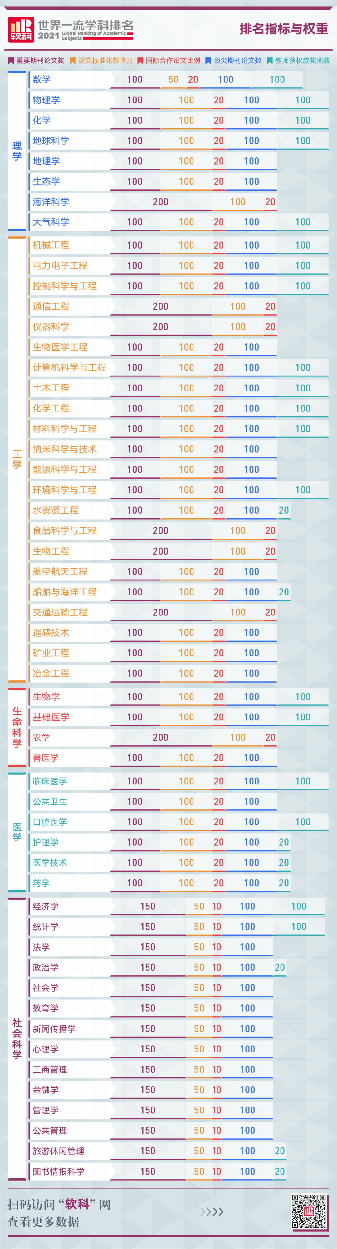 2021年排名覆盖54个学科,涉及理学、工学、生命科学、医学和社会科学五大领域。