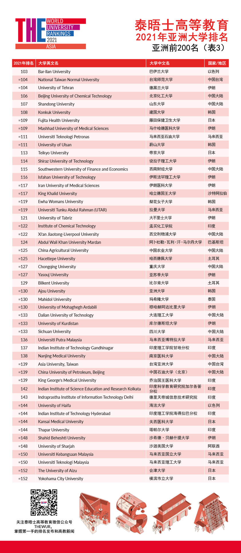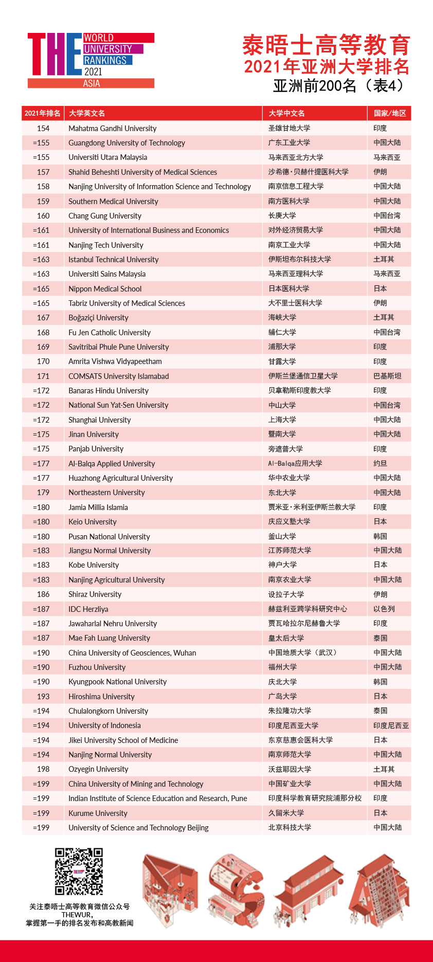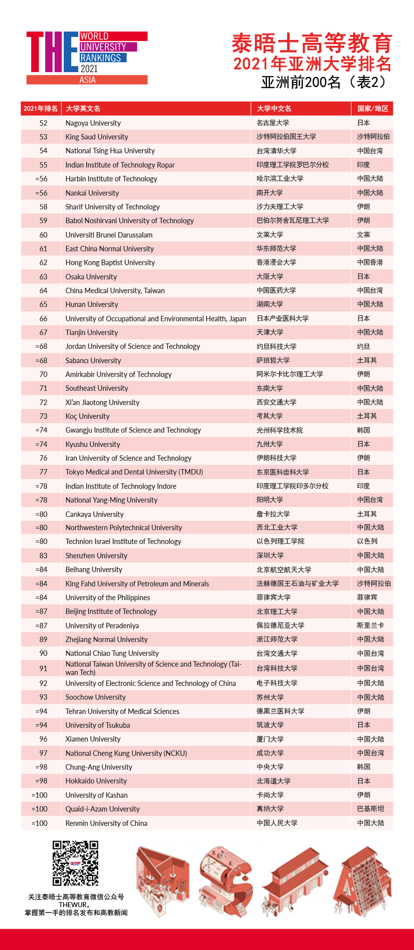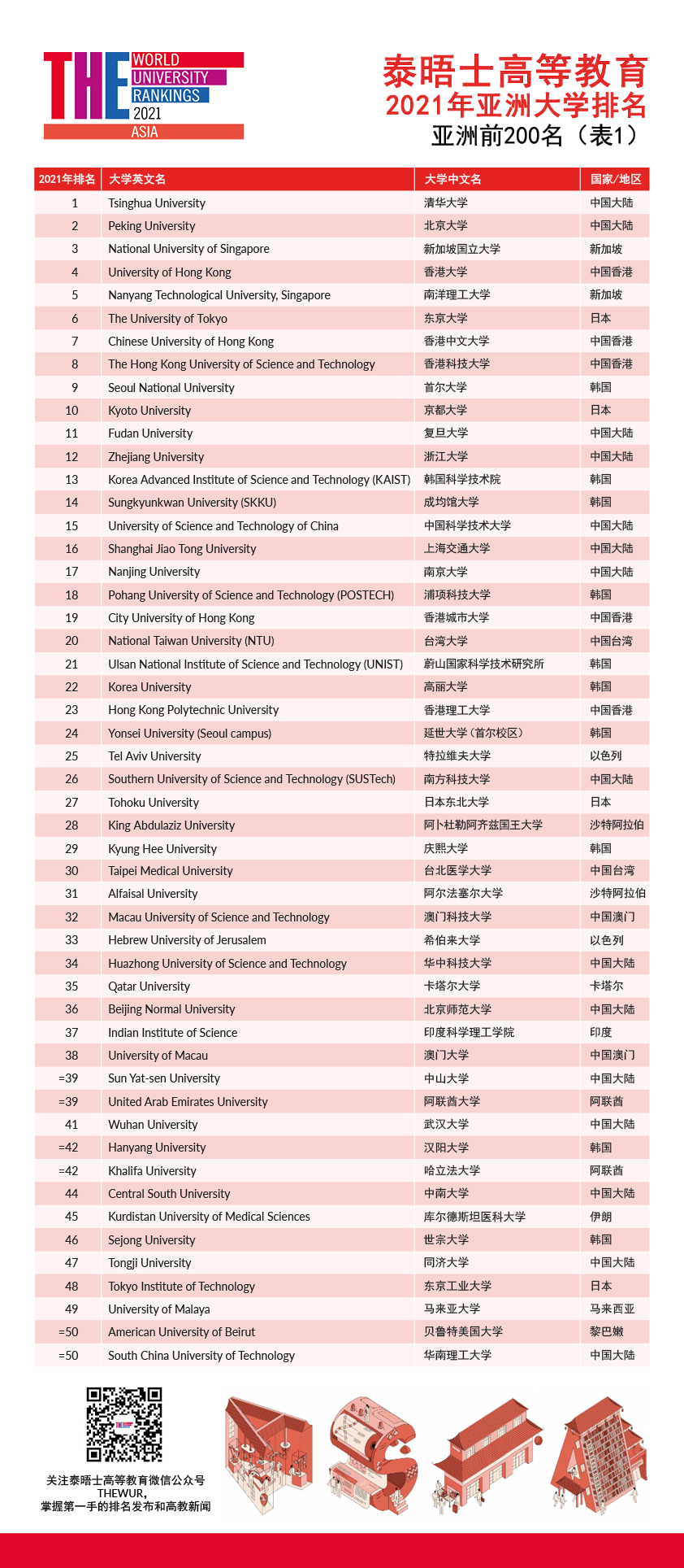 值得注意的是,进入2021THE亚洲大学排名榜单的高校,都是取得THE世界大学排名资格的高校。
