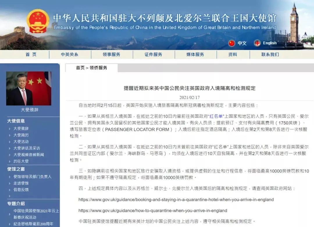 关于核酸检测的阴性证明报告,英国政府写明只接受英文报告原件,不接受翻译件(纸质版或电子版均可)。