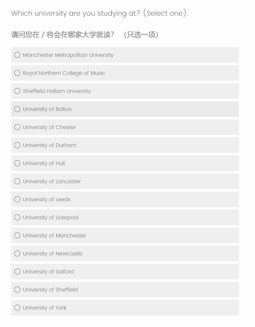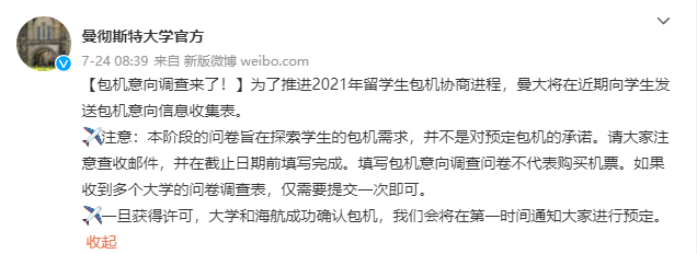 学校公布的包机调查问卷填写截止时间是英国时间7月29日23:59,问卷链接如下: