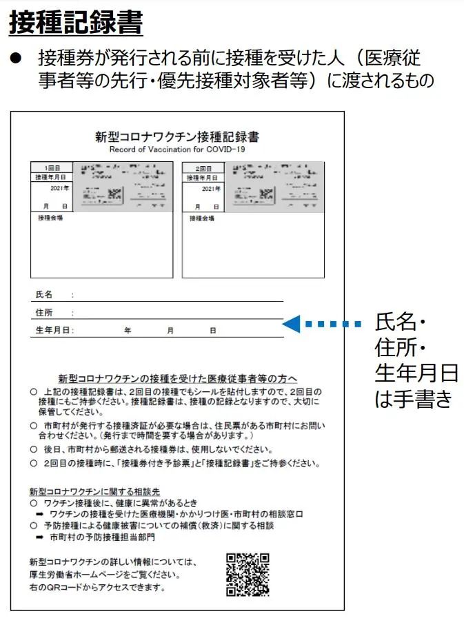 接種済証或接种记录书(打完疫苗即可拿到)