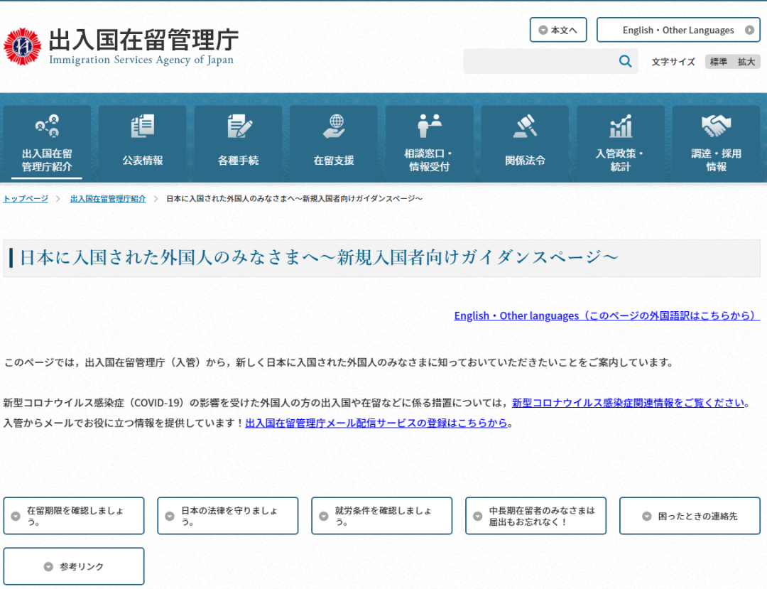 同时,在出入国在留管理厅的官网上,突然更新了一则针对新规入国外国人的指引。