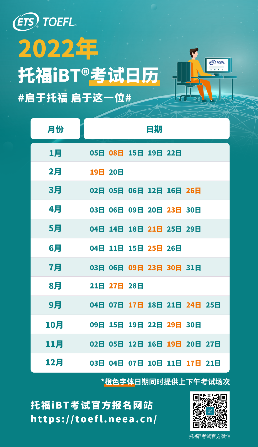 托福、雅思已经公布2022年考试日历,并从今日起正式开放考位报名!