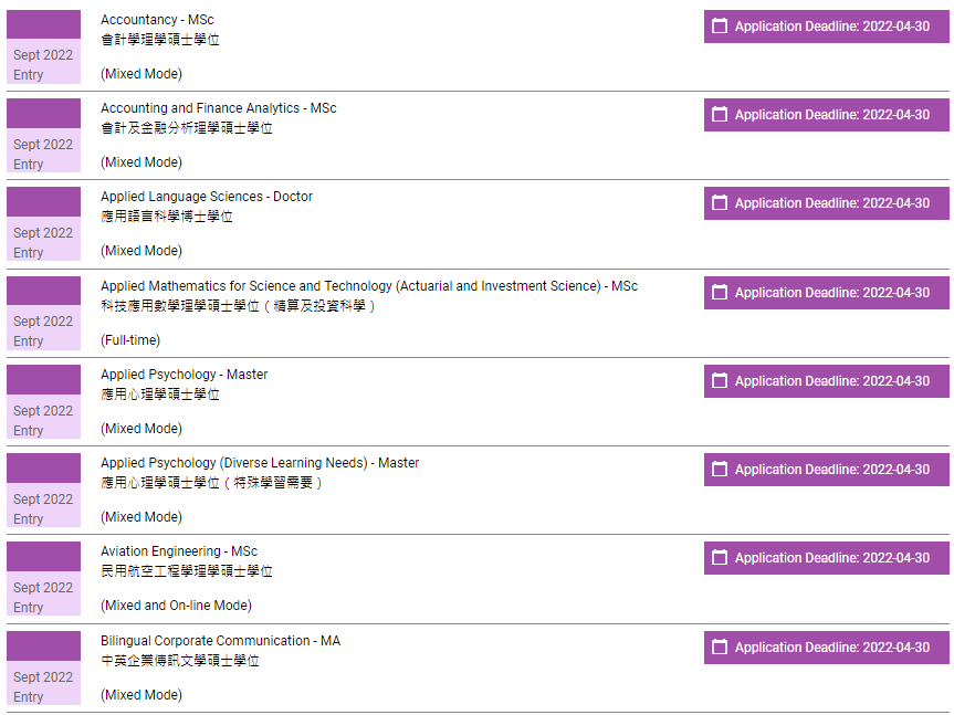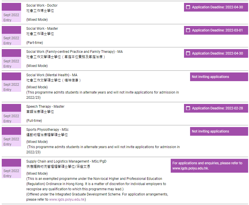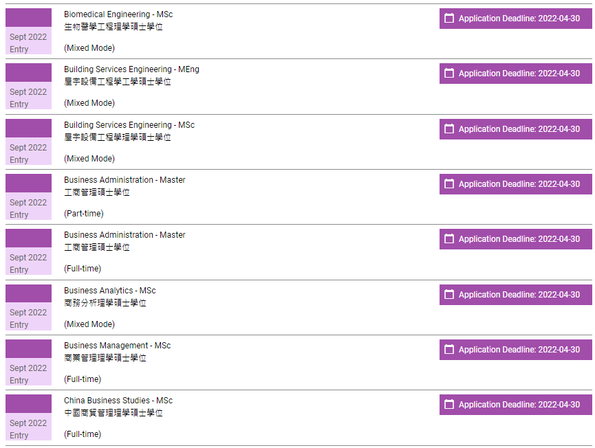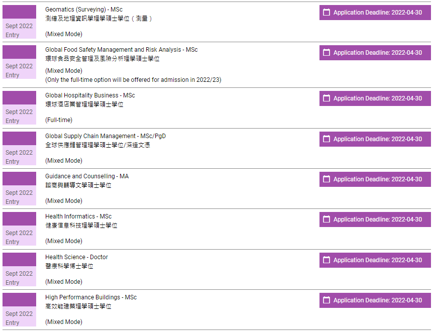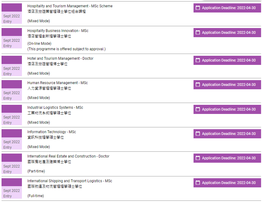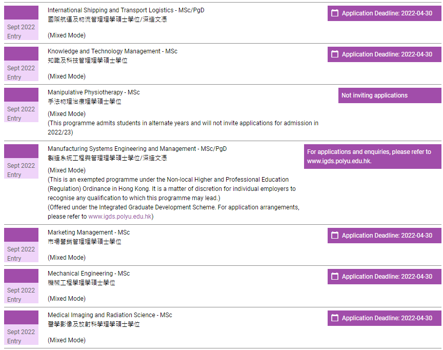 香港理工大学已经全面开放2022年授课型硕士申请,包括春季入学项目以及秋季入学项目,注意不同入学时间的申请截止时间不一样。