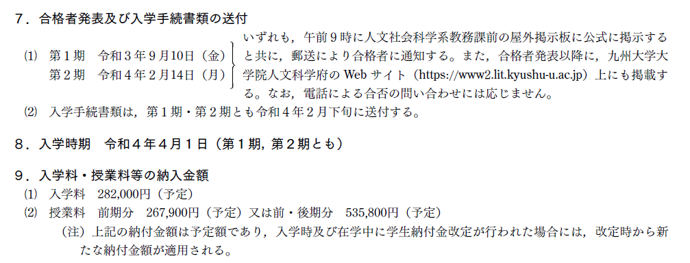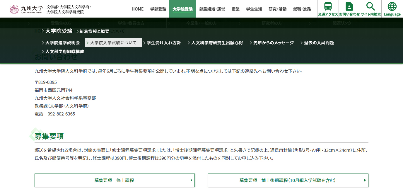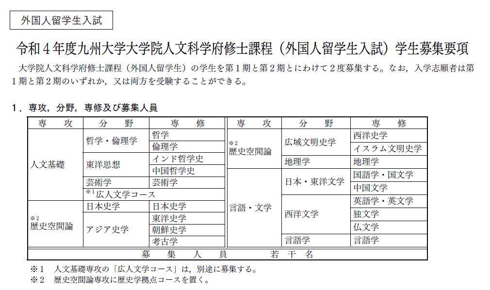 我们这里依然是以九州大学大学院人文科学府的募集要项为例,进行科普——