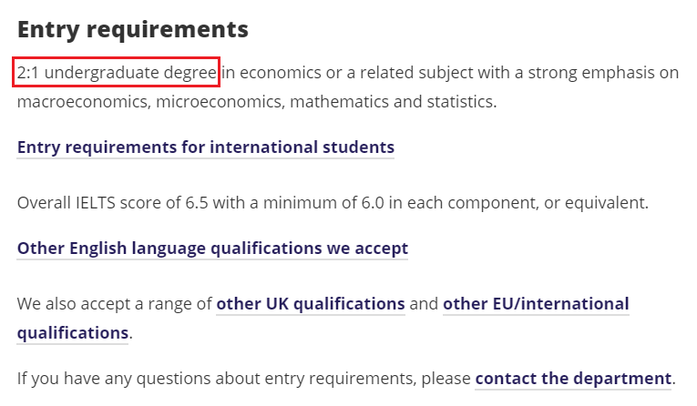 同学们在英国院校官网查询硕士项目的时候,经常会看到申请要求那一栏里面——要求具备2:1学位或以上。