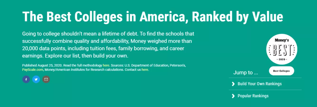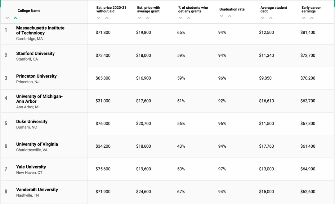 最近,《Money》杂志结合了美国教育部、Peterson's、PayScale的数据,对739多所美国大学的性价比进行了全面的分析对比,评选出了 2021年性价比最高的美国大学 。