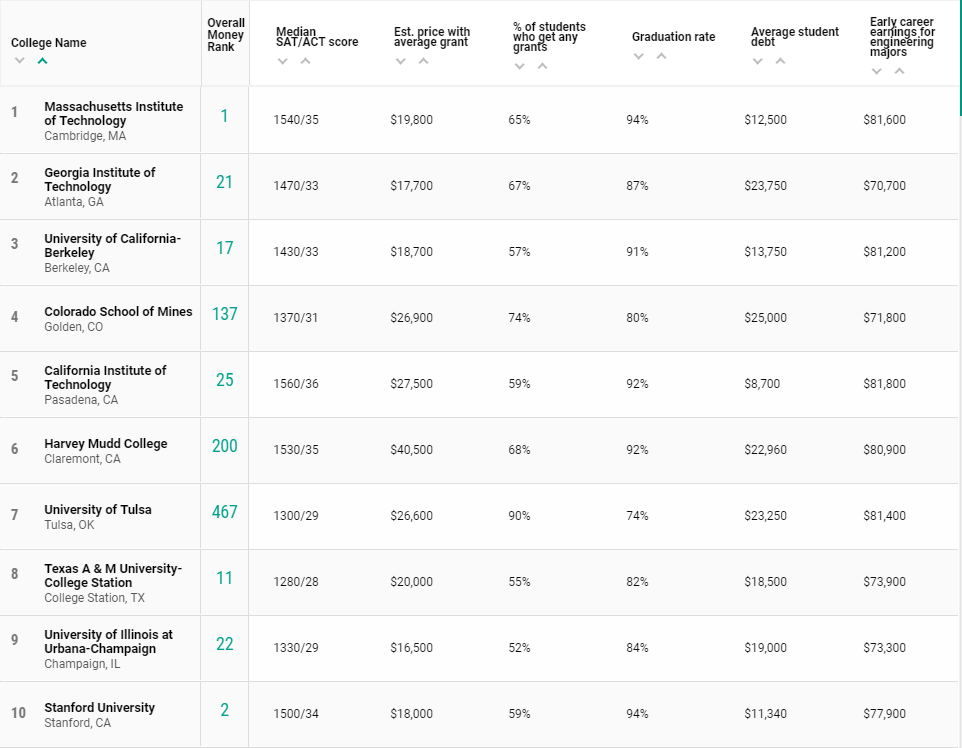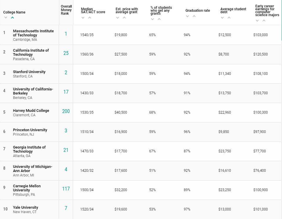 除了综合排名,《Money》还就 热门留学专业 ——计算机、商科、工程,发布了专业领域的最具性价比大学TOP 10排名,下面就跟着嘉华君一起来看看~