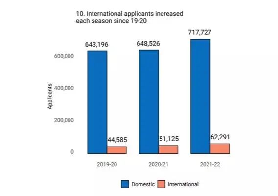 国际申请者大幅度增加,从上一申请季的51,125人,到本申请季的62,291人,增长11,166人,增幅近22%。