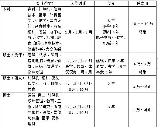 相对来说,马来西亚私立大学的招生要求比公立大学宽松,学费也并不是特别高,对于有经济压力的申请者来说,非常适宜入手。