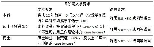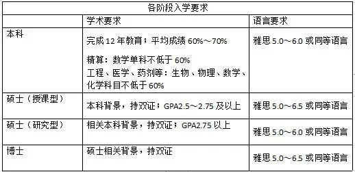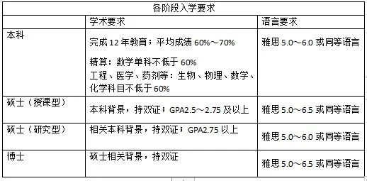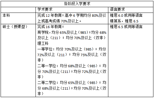 语言要求:雅思不低于6.5,部分院校项目可接受5.0(或需衔接语言课程)。