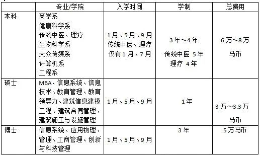 教育方面,马来西亚院校文凭被国际公认,自身含金量高,并且大部分院校有丰富的双联课程。