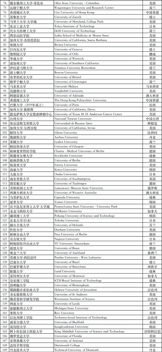 世界前51-100院校名单