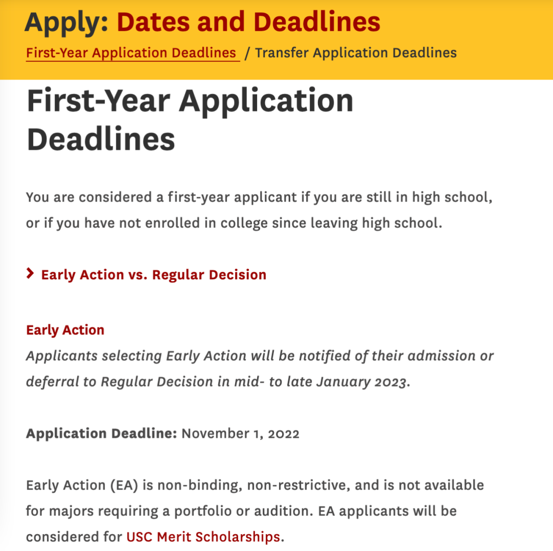 此次南加州大学早申的截止日期是11月1日,常规申请的截止日期仍然是1月15日。