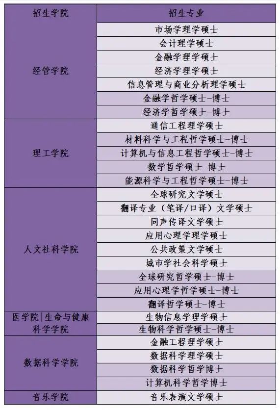 港中深2022年研究生自主招生则有经管学院、理工学院、人文社科学院、医学院|生命与健康科学学院、数据科学学院及音乐学院参与,学生报名时原则上只可选择1个意向专业。