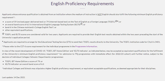 港城大在硕士招生要求中明确,申请者需持有获认可的学士学位或同等学历,并且本科非英文授课申请者须提供英语能力证明。