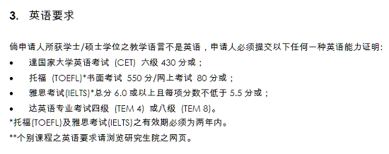 部分硕士项目的语言要求可能会更高,具体要求可以查看官方网站。