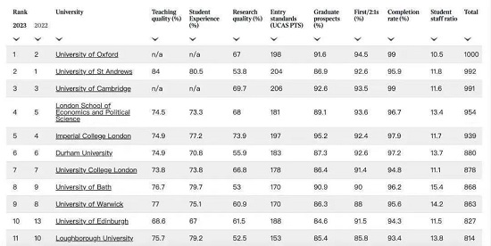 ▲The Times&The Sunday Times2023英国大学排名,图源其官网