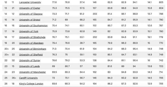 相比于像QS这种世界大学综合排名,TIMES英国大学排名能够更反映出在英国本地人心目中各高校的排名情况。