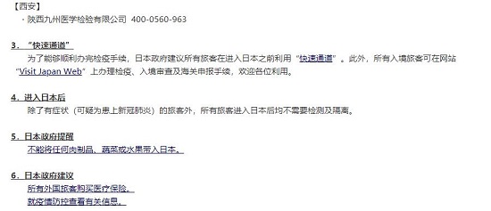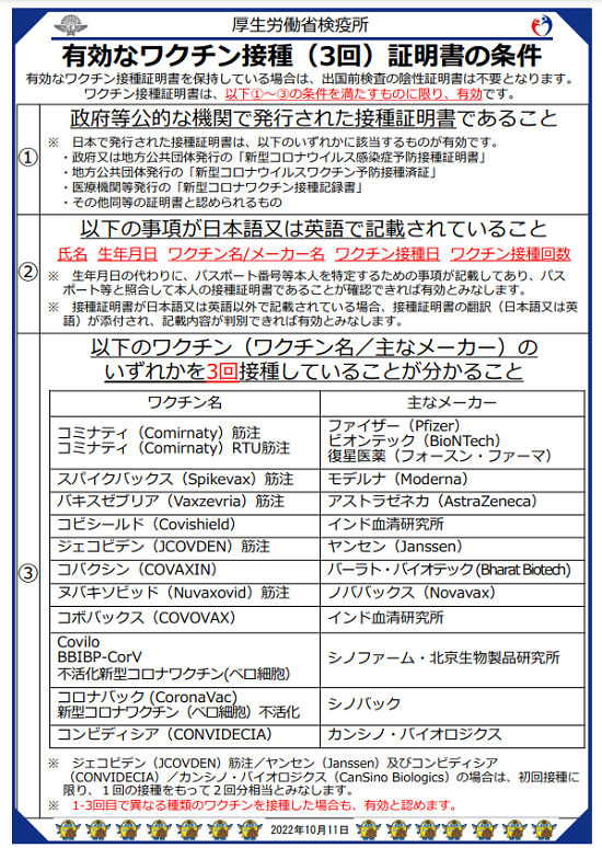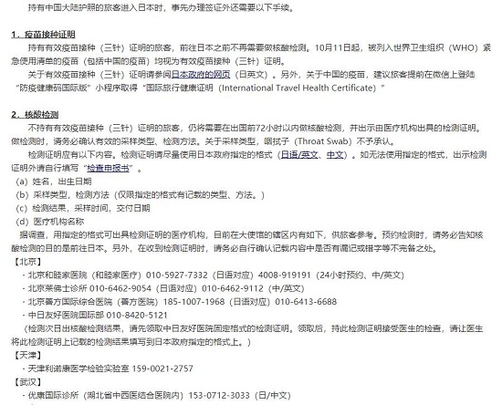 *关于有效疫苗接种(三针)证明请参阅日本政府的网页(日英文)。另外,关于中国的疫苗,建议旅客提前在微信上登陆“防疫健康码国际版”小程序取得“国际旅行健康证明(International Travel Health Certificate)”。