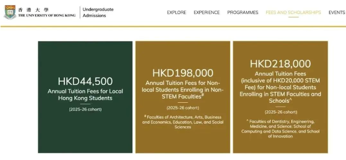 在香港,各高校学费因学生身份及专业不同而存在差异。以香港大学(HKU)为例:
