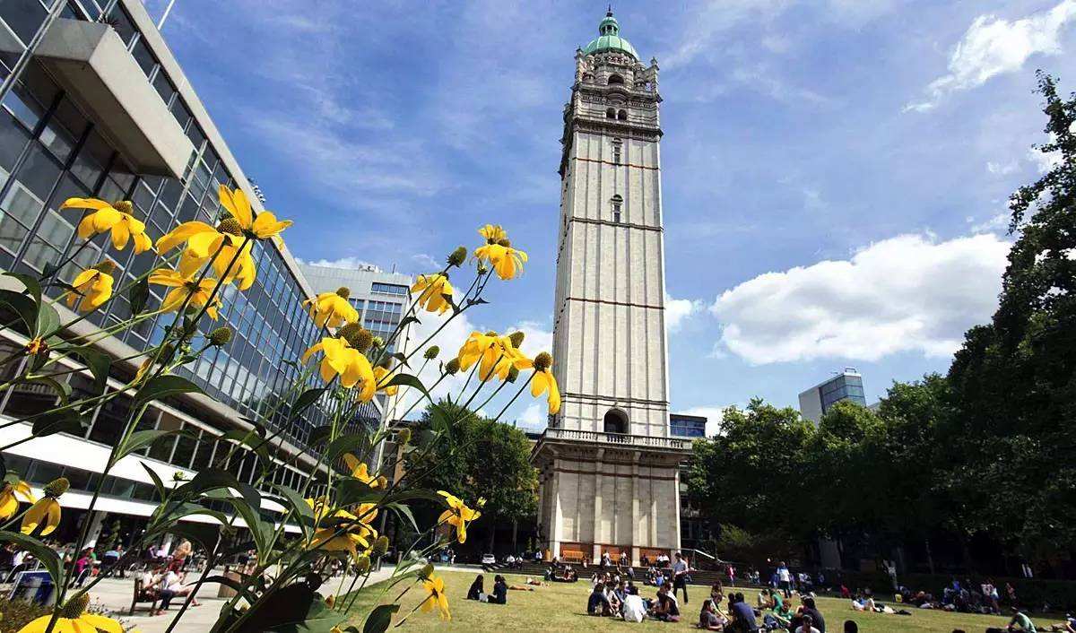 我们去的第一所学校就是帝国理工学院的南肯辛顿校区,学校中央的女王塔,是校园里的标志性建筑,塔高287英尺(85米),一眼就能望得见,绿色的屋顶很漂亮。