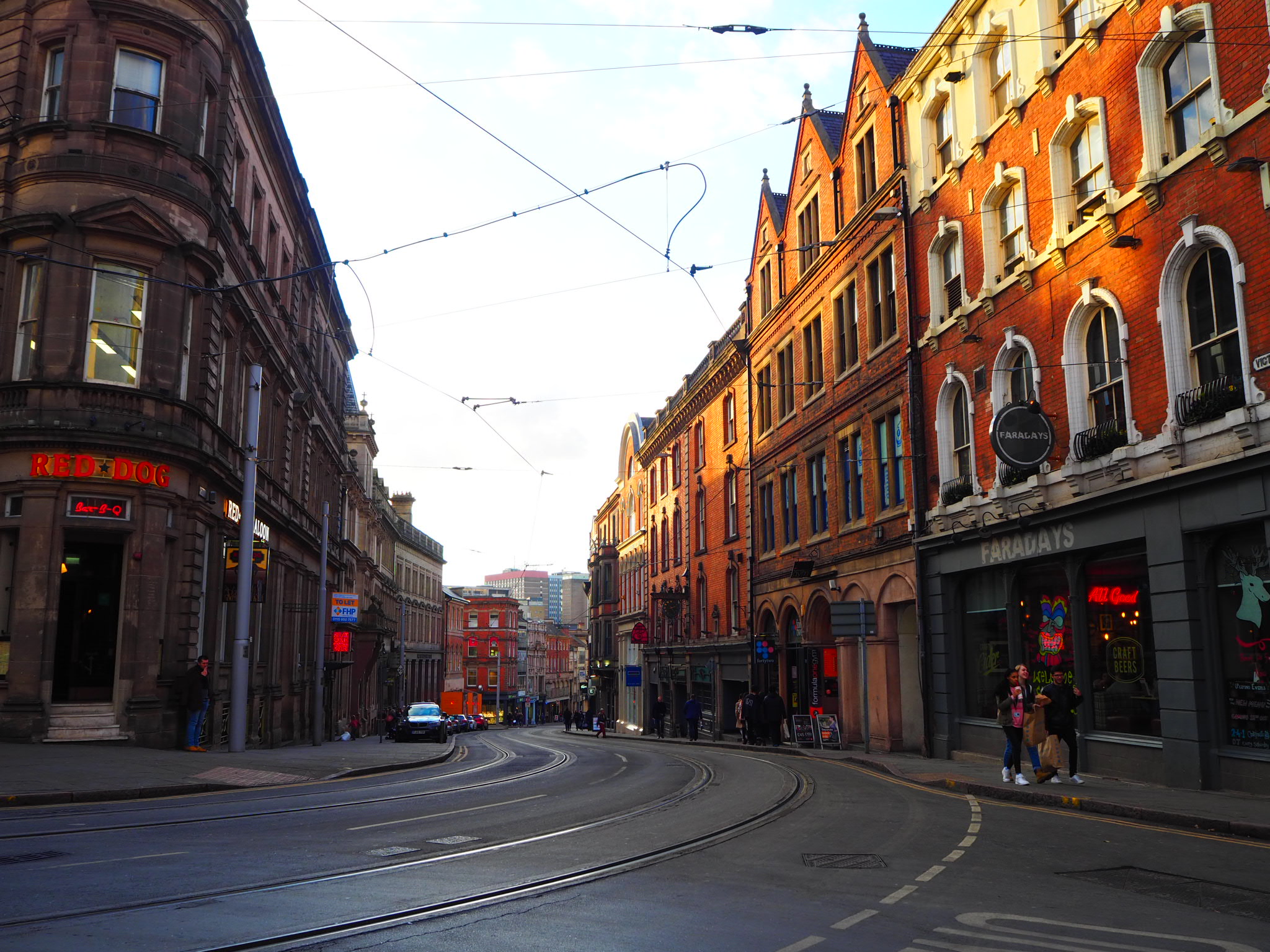 市中心比较繁华热闹,商店随处可见,交通很便利,电车很多,公路上都有电车的轨道,路上行人也比较多,热闹的情景与古旧的建筑对比起来,英伦范十足!