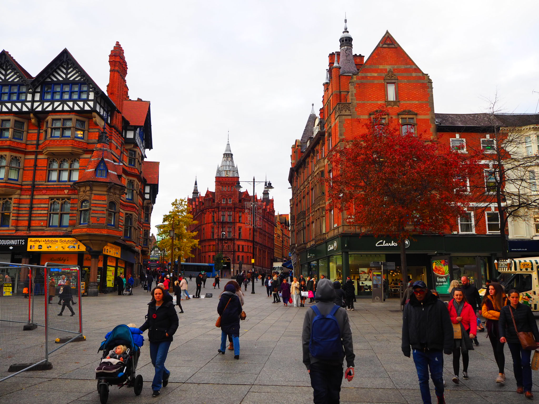 诺丁汉的天气还不错,没有下雨,稍微有点阳光,让人心生暖意。诺丁汉市中心的房屋基本都是砖红色和米白色的,视觉上给人有一种英国古老城堡的怀旧感。