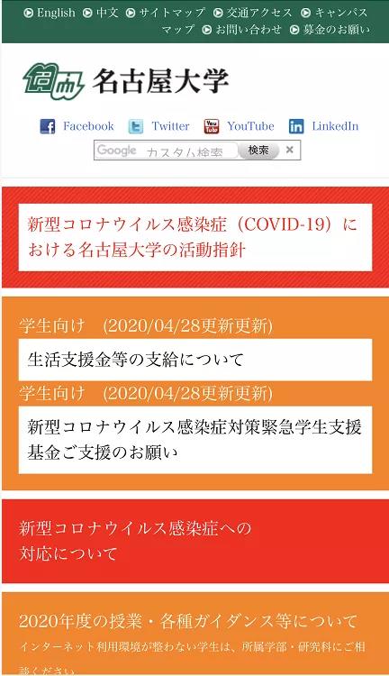 4月28日,名古屋大学为学生提供了每人3万日元的支援金,并将今年4月入学的新生的学费支付期限延长到了7月末。