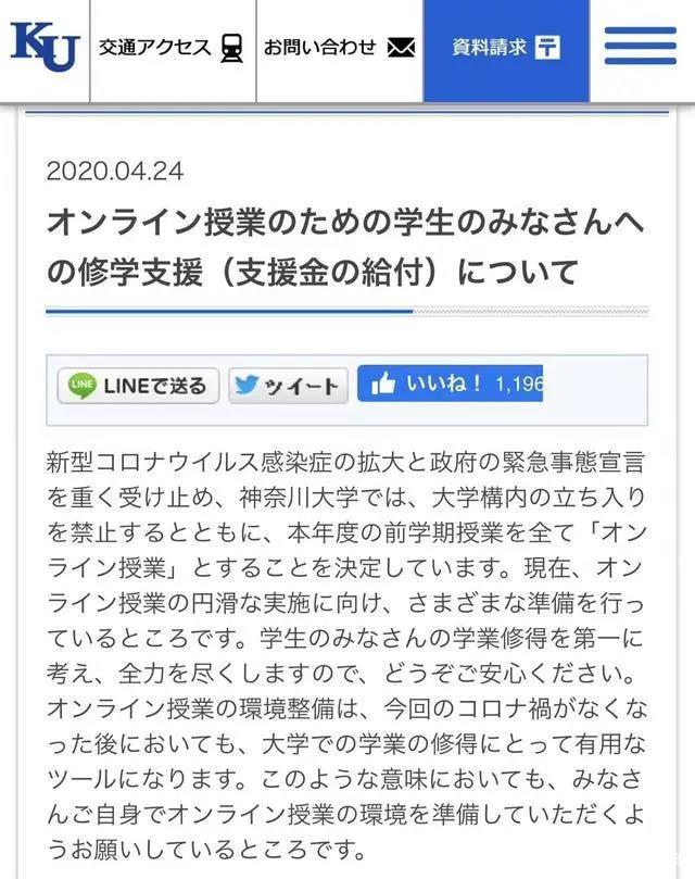 4月24日,神奈川大学创建80多年来为日本社会各界培养输送了大批人才,在社会上享有良好的口碑,这次疫情给每位学生发放5万日元补贴!