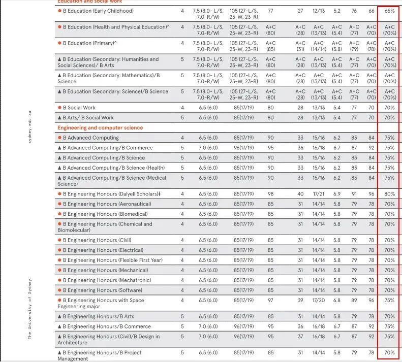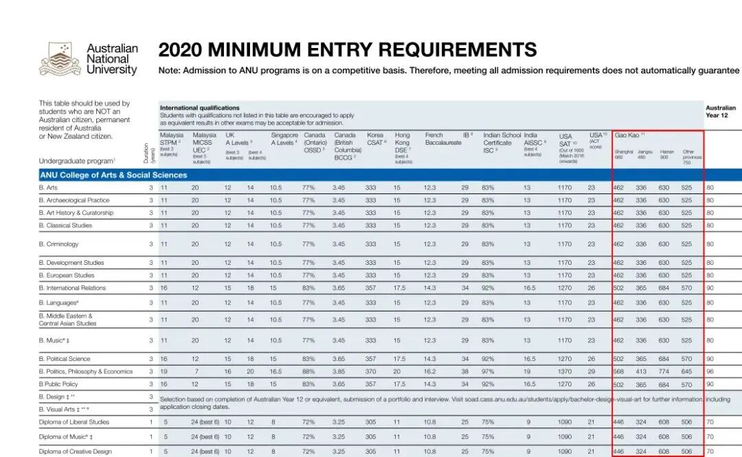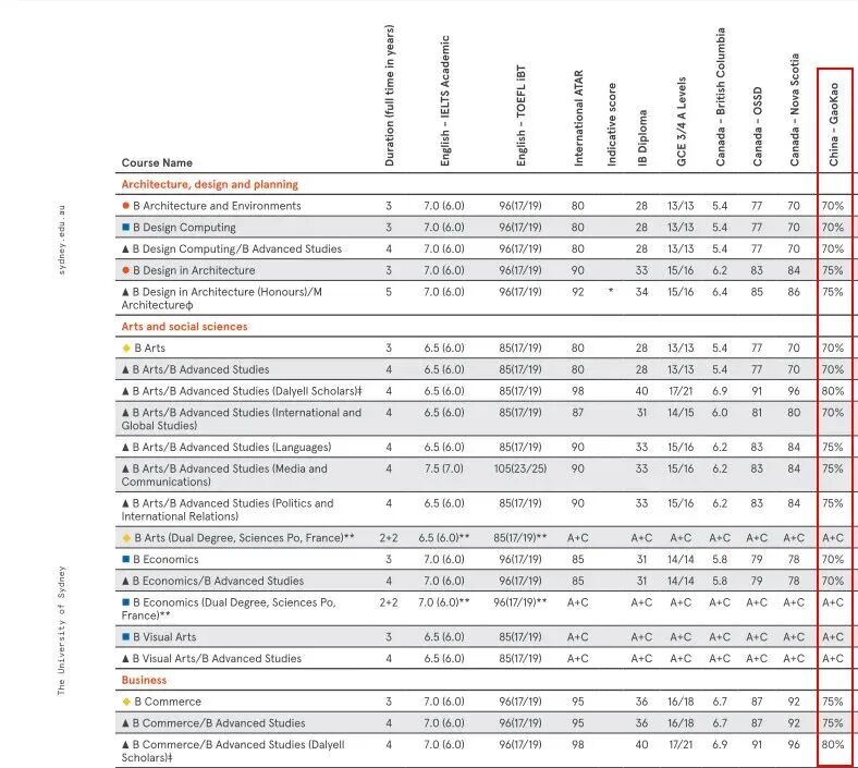 对于昆士兰本科要求ATAR小于85要求的,高考总分需达到70%