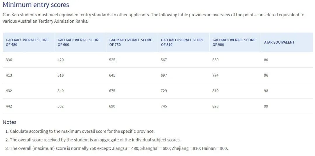 对于昆士兰本科要求ATAR大于85要求的,高考总分需达到75%