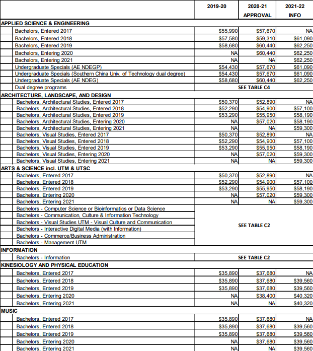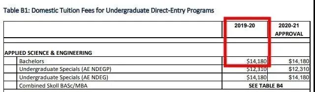 Applied Science(科学) and Engineering degreeprograms(工程)学费上涨3%